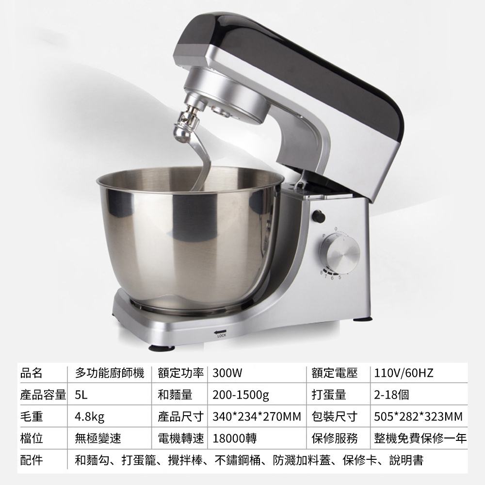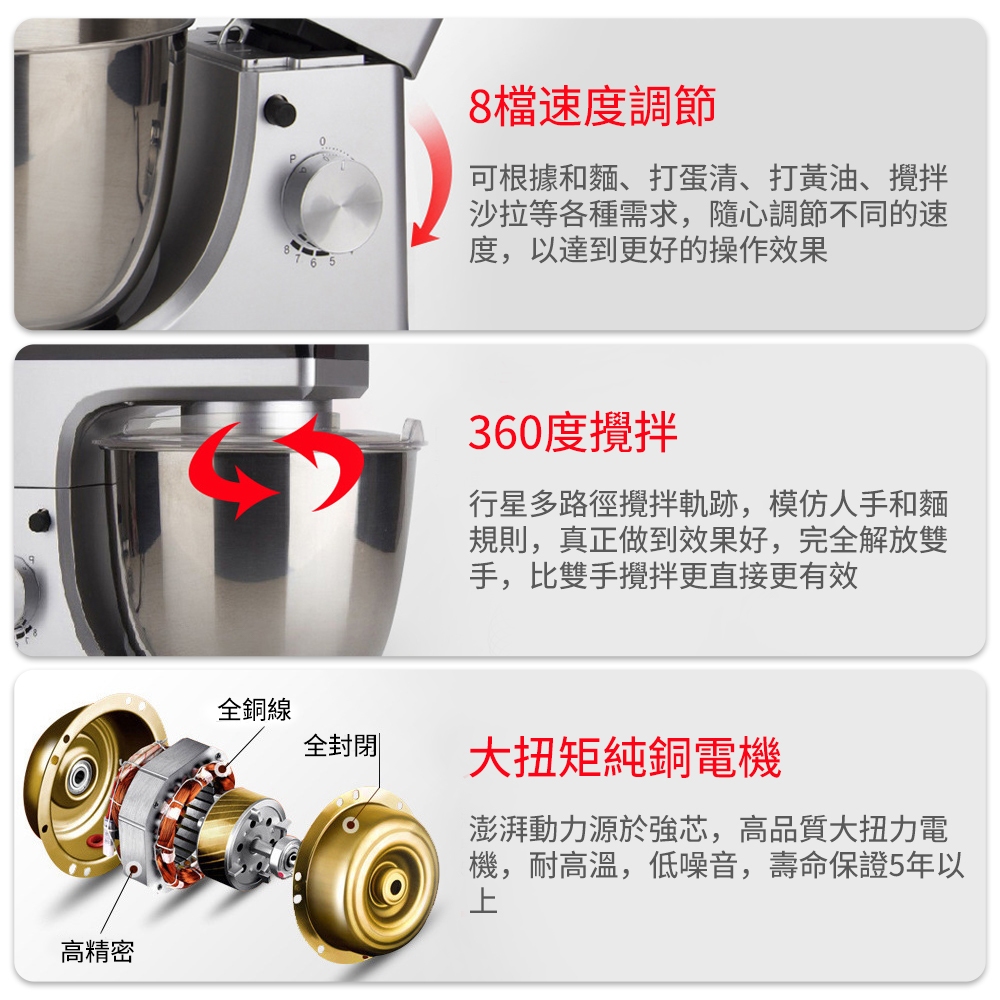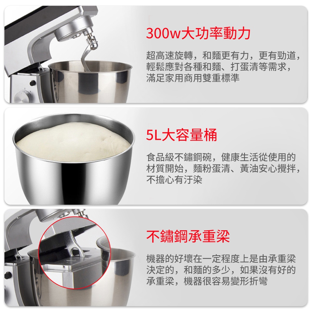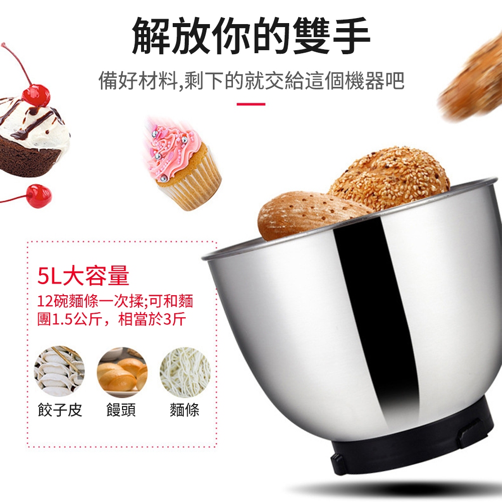 BSMI認證 5L攪拌機 和麵機 廚師機 桌上型抬頭式 揉麵機 和麵器 打泡器 烘焙專用 揉麵打蛋攪拌 送三種麵鉤5L廚師機-麵盆|5L廚師機/附三種面鉤/一年保固MixersHeartPick心選品牌店