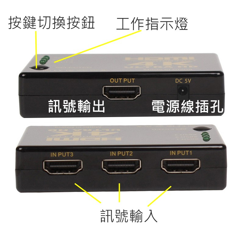 HDMI切換器 3進1出 5進1出 切換盒 擴充分配器 切換器 HDMI線 4K 高畫質 【GC340】【GC340A】3進1出|【GC340B】5進1出TV Boxes & ReceiversJOLIN久林批發~台灣出貨~滿50再結帳~
