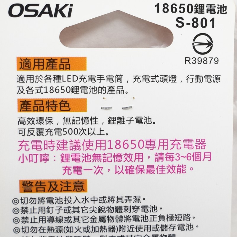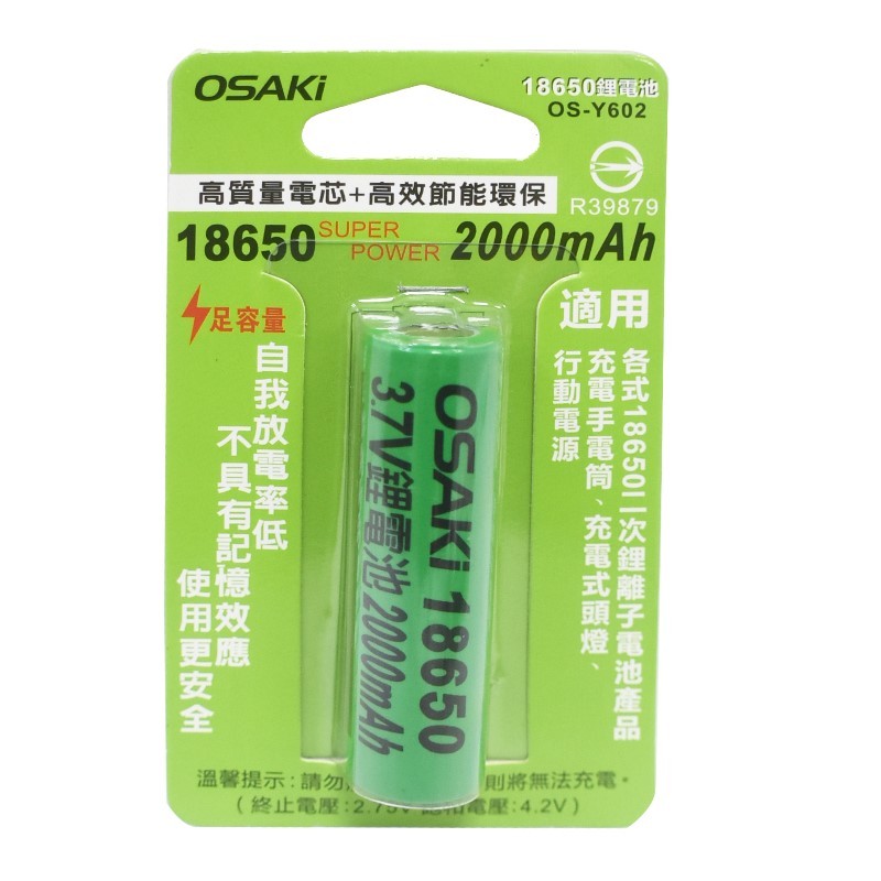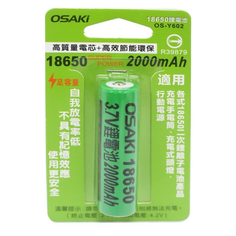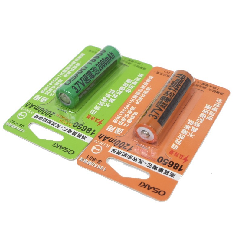 OSAKI 鋰電池 18650 1200mah 2000mah 平頭 尖頭 充電電池 BSMI認證【GQ230-2】【GQ230】1200mah尖頭電池|【GQ231】2000mah尖頭電池|【GQ232】2000mah平頭電池JOLIN久林批發~台灣出貨~滿50再結帳~