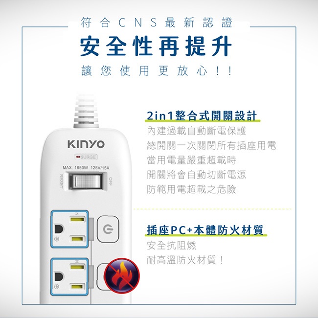 〖KINYO〗 4開4插安全延長線 (NSD) 6呎/9呎/12呎 耐燃材質 | 台灣製造NSD3446 延長線6呎|NSD3449 延長線9呎|NSD34412 延長線12呎Electric Sockets & Extension CordsKINYO官方旗艦店_家電館