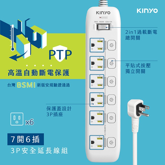 【KINYO官方直營】7開6插高溫斷電延長線9呎 (GI)GI3769 七開六插_9呎Electric Sockets & Extension CordsKINYO官方旗艦店_3C館