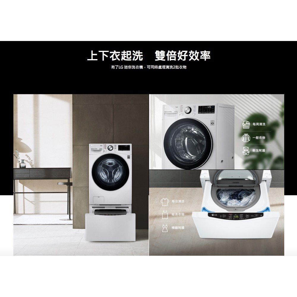 LG TWINWash雙能洗WD-S22FW+WT-SD250HW(蒸洗脫) 送除氯蓮蓬頭,防雷擊延長線,兌換送即享券限時特賣 S22FW+SD250HW|WD-S22FW+WT-SD250HWWashing Machines & DryersLG旗艦館