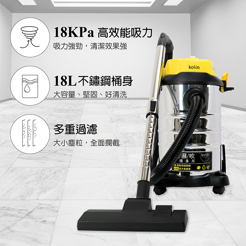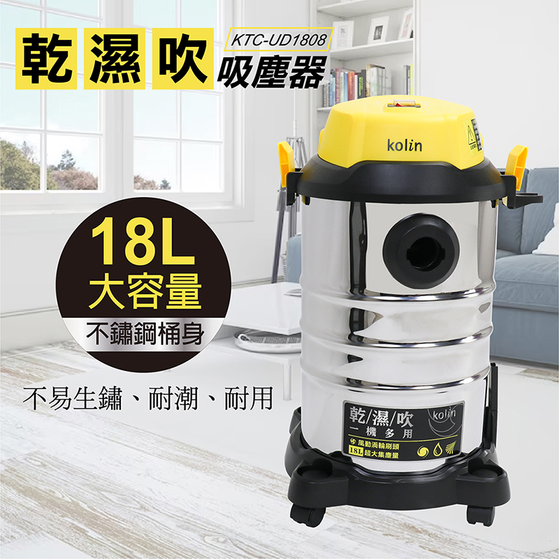 【kolin歌林】18L多功能乾濕吹吸塵器(KTC-UD1808)|不鏽鋼桶身 乾溼吹 吸水吸塵器【kolin歌林】18L多功能乾濕吹吸塵器(KTC-UD1808)|不鏽鋼桶身 乾溼吹 吸水吸塵器Vacuum Cleaners & Floor Care AppliancesKOLIN歌林小家電生活館