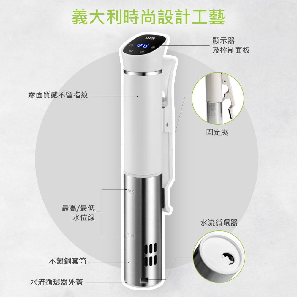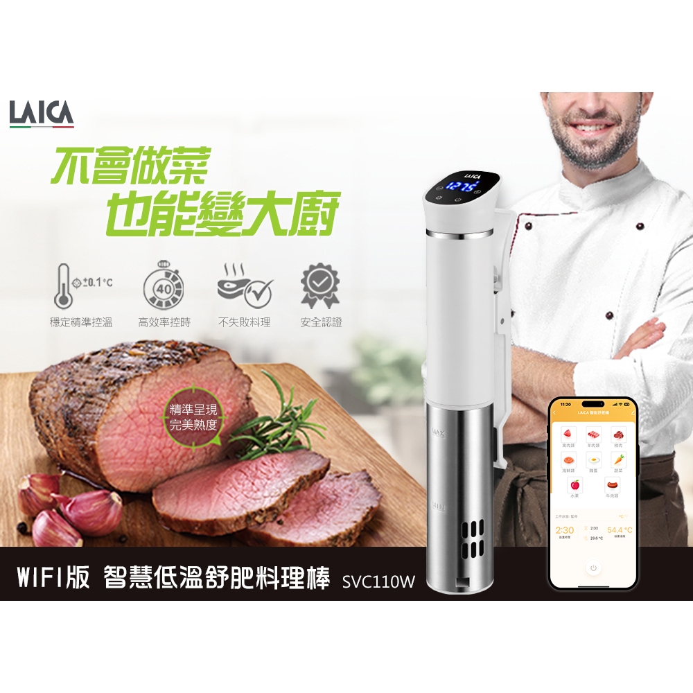 LAICA 萊卡 WIFI版智慧低溫料理舒肥棒 舒肥機 白色 SVC110W單機|單機+真空捲|單機+義製真空保鮮盒2入(長高款)|單機+義製真空保鮮盒2入(方扁款)|單機+手持真空機+夾鏈真空袋|單機+手持真空機+夾鏈真空袋+真空捲|單機+輕巧型真空包裝機Slow Cookers & Sous Vide MachinesLAICA 義大利萊卡 廚房專業館