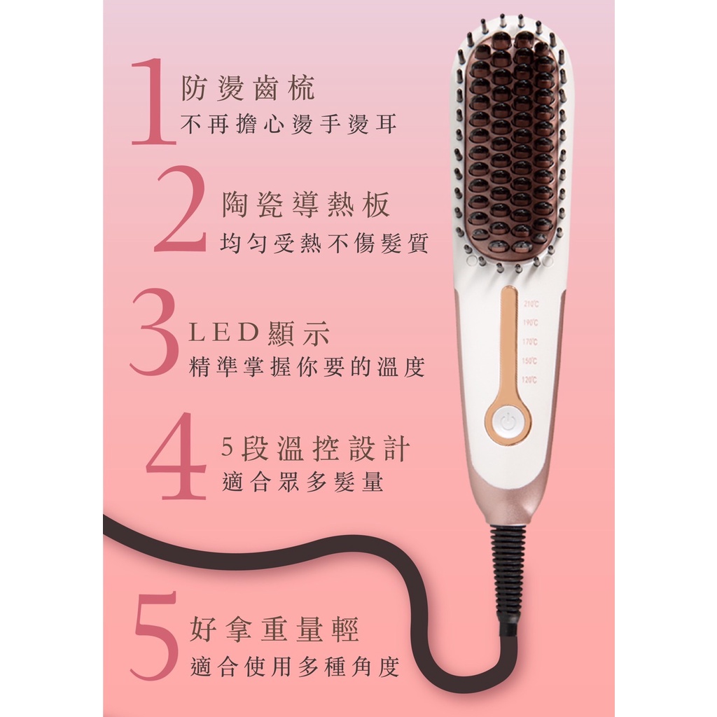【Anqueen 安晴】溫控魔髮造型梳 QA-N17B 帶線款 直髮梳 造型梳 捲髮梳 燙髮梳_Kimi極美職人推薦【白色】OthersKimi極美職人