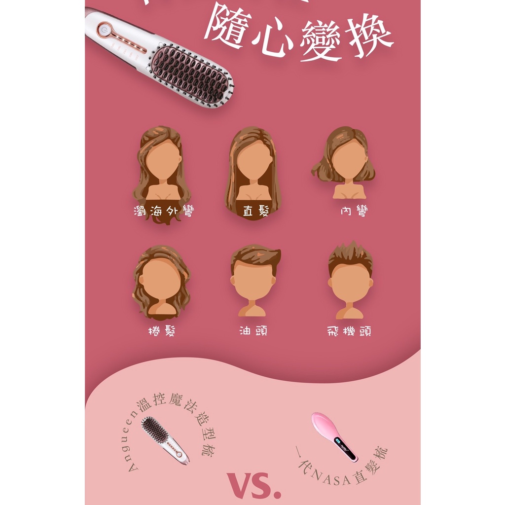 【Anqueen 安晴】溫控魔髮造型梳 QA-N17B 帶線款 直髮梳 造型梳 捲髮梳 燙髮梳_Kimi極美職人推薦