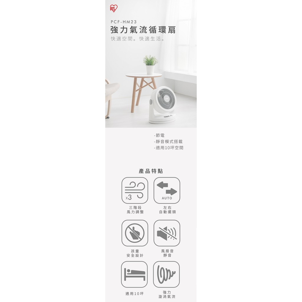 【IRIS OHYAMA】日本9吋空氣循環扇 PCF-HM23 適用10坪 電風扇 風扇 大風量 靜音 公司貨【白色】CoolingKimi極美職人