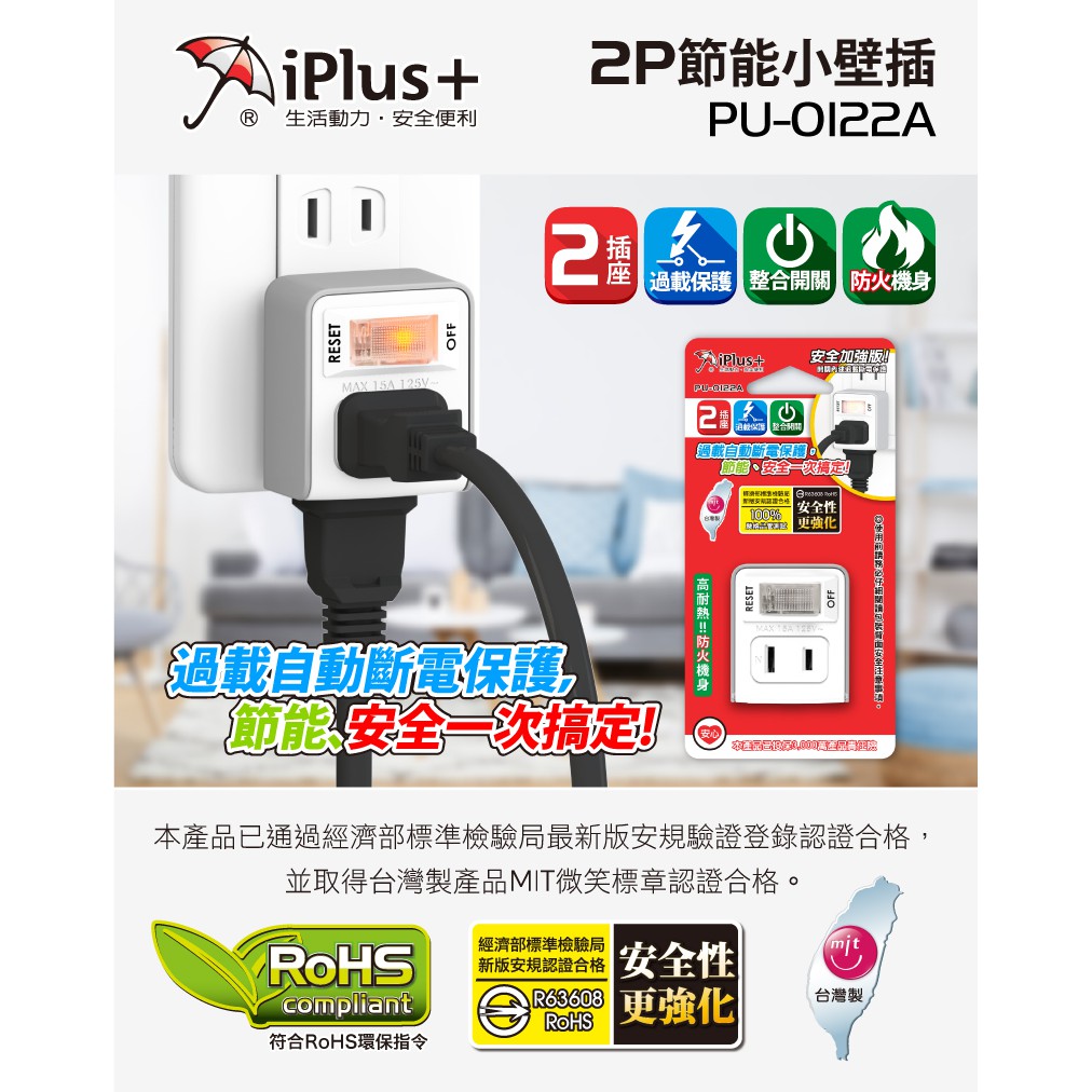 【保護傘】2P安全加強型節能小壁插1切2座(PU-0122A)【保護傘】2P安全加強型節能小壁插1切2座(PU-0122A)Electric Sockets & Extension CordsiPlus+保護傘延長線品牌館