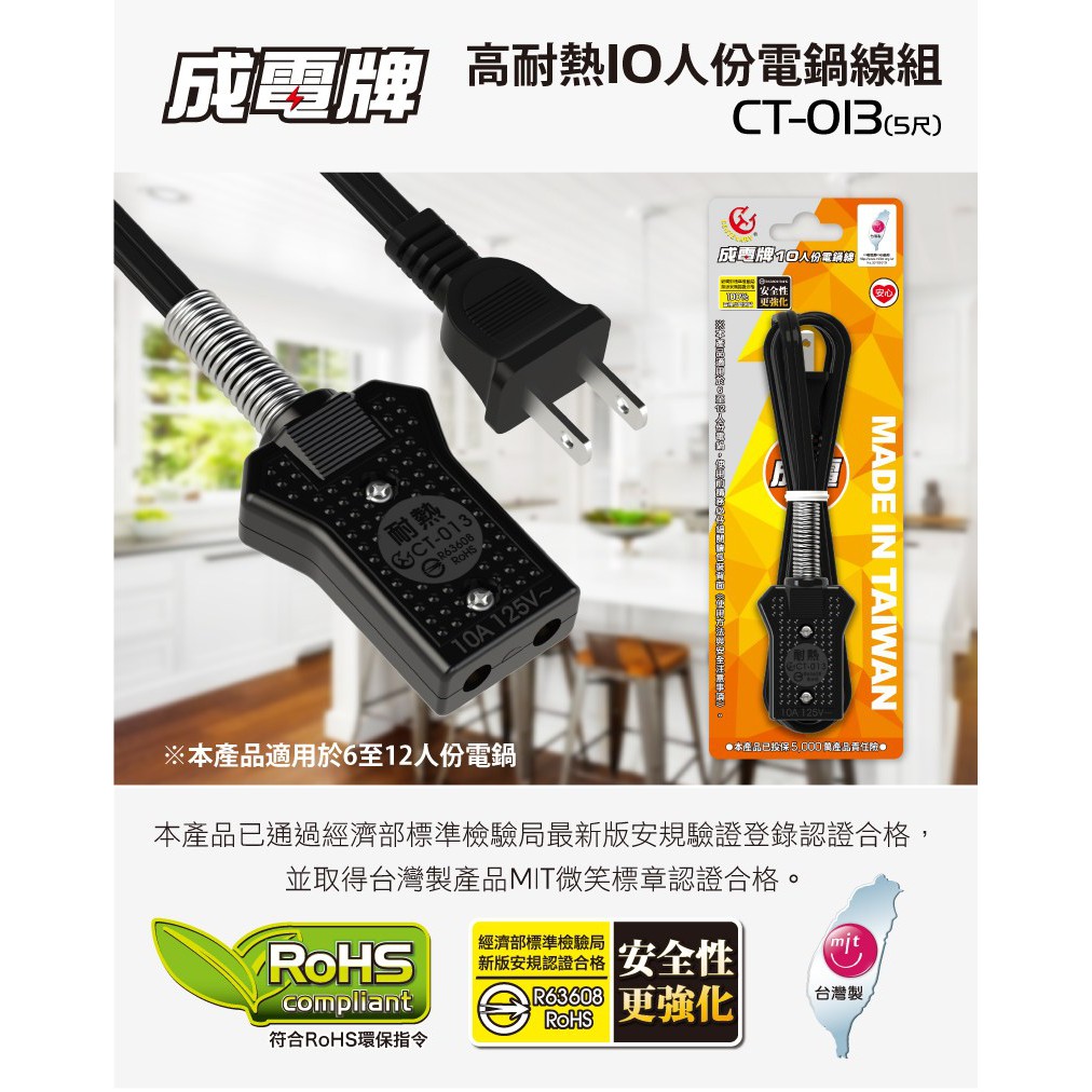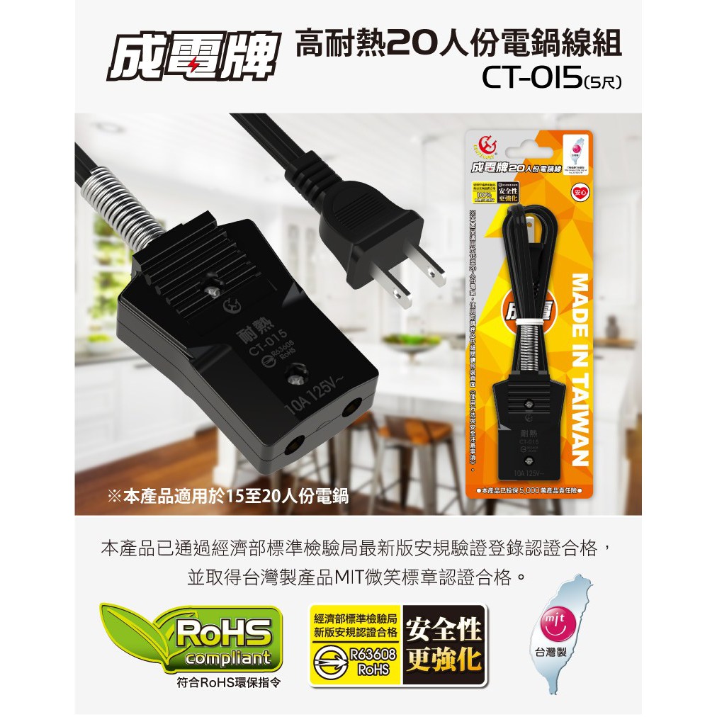 成電牌 高耐熱電鍋線組10人份–電鍋線|20人份–電鍋線OthersiPlus+保護傘延長線品牌館