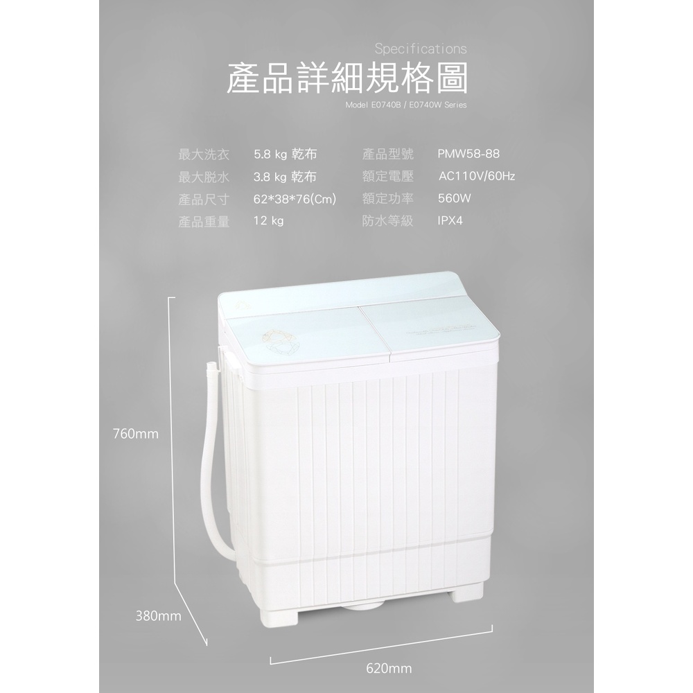 【IDEAL 愛迪爾】5.8kg 鋼化玻璃 洗脫兩用 迷你雙槽洗衣機 (E0740W )-僅配送台灣本島-迷你洗衣機【IDEAL 愛迪爾】5.8kg 鋼化玻璃 洗脫兩用 迷你雙槽洗衣機 (E0740W )-僅配送台灣本島-迷你洗衣機Washing Machines & Dryersideal愛迪爾