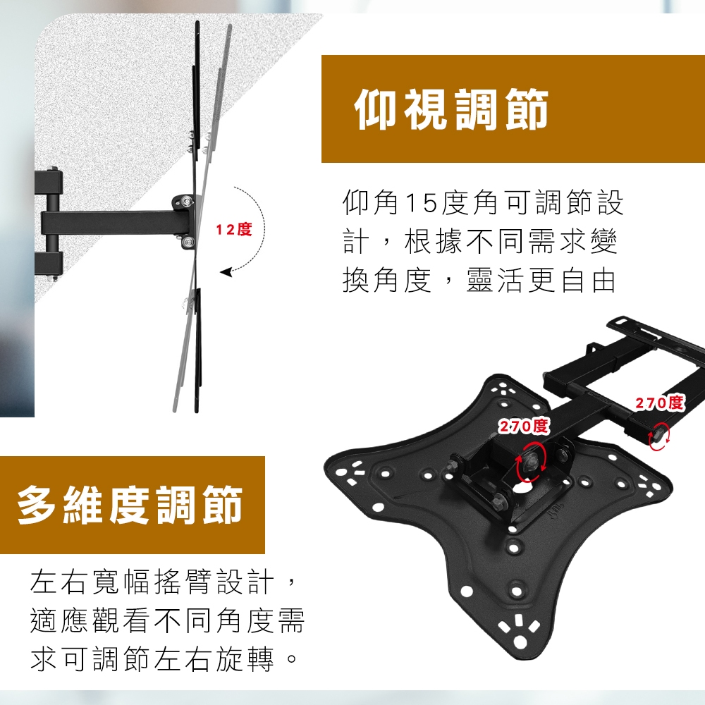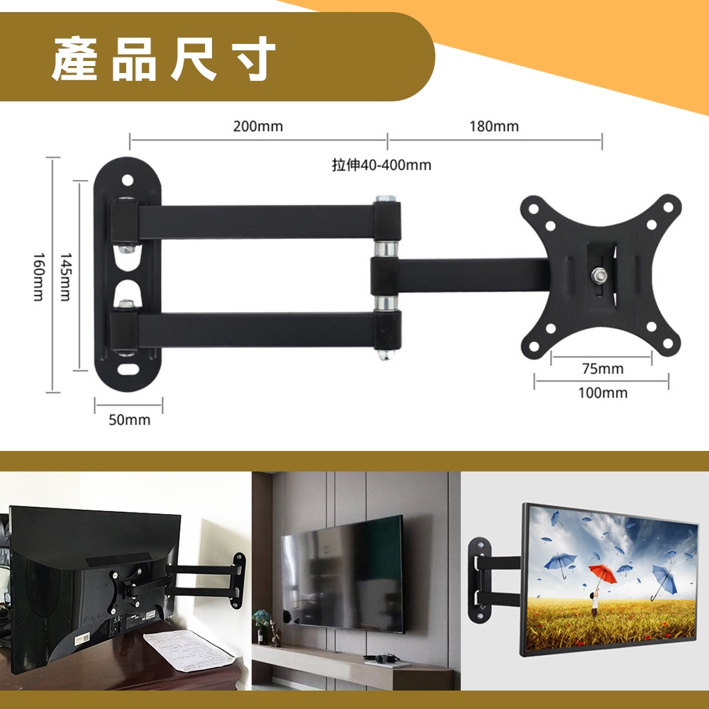 【台灣現貨】10~75吋 多角度螢幕壁掛架 電腦螢幕 電競螢幕支架 螢幕架 電視架 電視 伸縮 壁掛架 適合 LG10~26吋【蝦店限6台】|17~42吋【蝦店限3台】|14~60吋 金屬加厚【蝦店限2台】|32~75吋_【不能蝦皮店到店】|14~24吋上下左右調整【蝦店限10台】|2米 HDMI高階8K認證線x1|14~42吋_俯仰調整【蝦店限6台】|26~55吋_俯仰調整【蝦店限2台】|42~70吋_俯仰調整【不能蝦皮店到店】|14~42吋【蝦店限3台】|10~27 英吋【蝦店限2台】TV Bracketsi-gota官方旗艦館|昶興電子