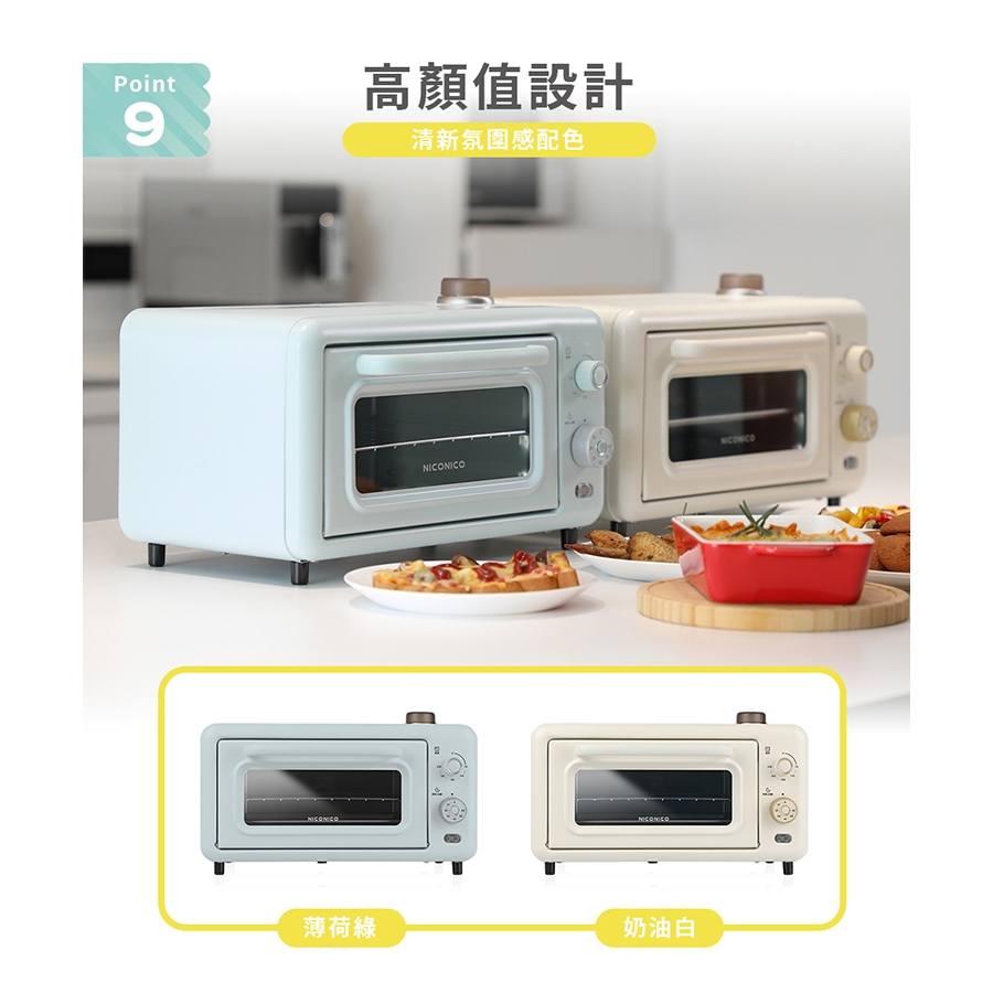 【NICONICO】12L蒸氣烤箱 電烤箱 NI-S2308薄荷綠|奶油白Ovensikiiki伊崎家電_官方旗艦店