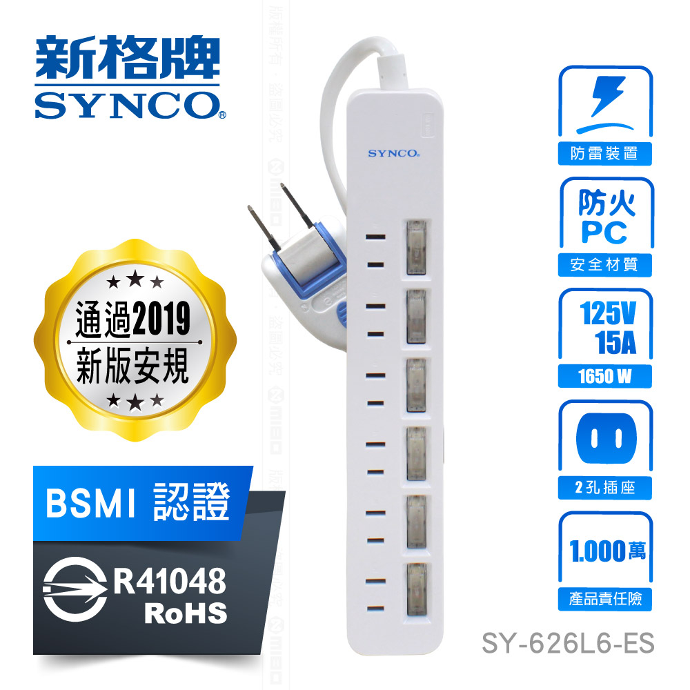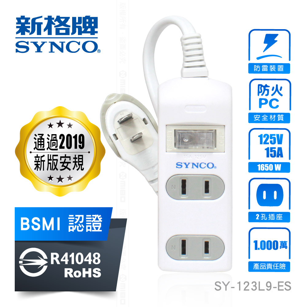 SYNCO 新格牌 新安規 雙層絕緣 防突波 過載自動斷電 安全延長線 附發票 甜甜價 2孔 6尺/9尺