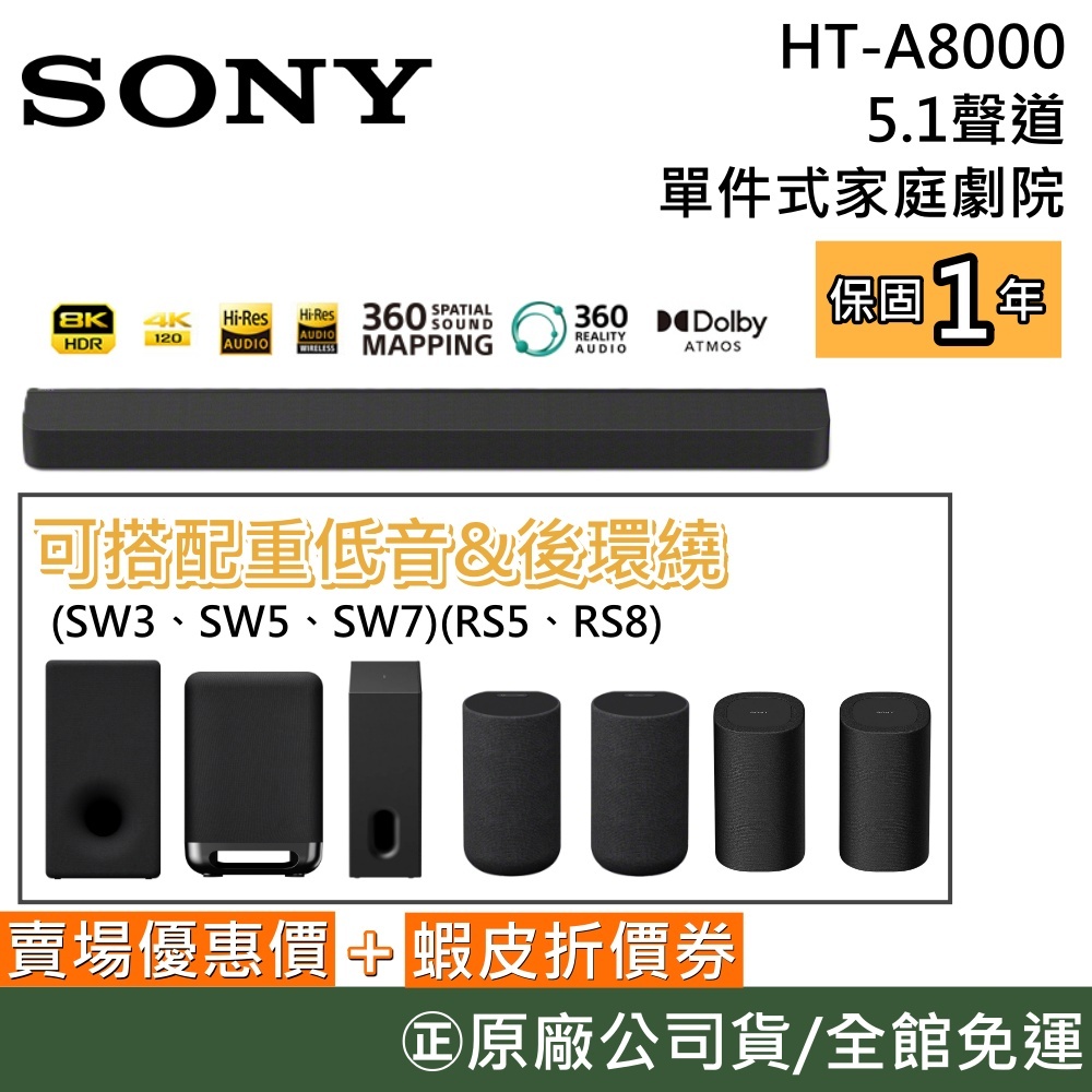 SONY 索尼 HT-A8000【領卷再折】BRAVIA Theatre Bar 8 台灣公司貨可加SW3 SW5A8000+SW7(新!)|A8000+RS8(新!)|A8000+SW3+RS8|A8000+SW5+RS8|A8000+SW7+RS5|A8000+SW7+RS8|A8000+RS5|A8000+SW5|A8000+SW5+RS5|A8000+SW3+RS5|A8000【領券再折1000】|A8000+SW3OthersGSIR家電生活館
