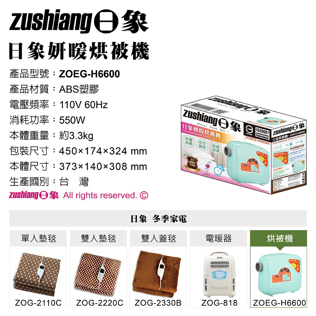 【日象】妍暖烘被機(橫式) ZOEG-H66001入Futon & Shoe Dryershaogeen中華豪井 小家電旗艦店