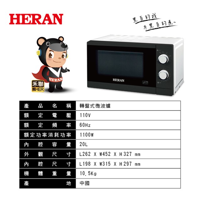 【禾聯 HERAN】20L轉盤式微波爐-20G5T-HMO【禾聯 HERAN】20L轉盤式微波爐-20G5T-HMOMicrowavesHERAN禾聯 熊好的店