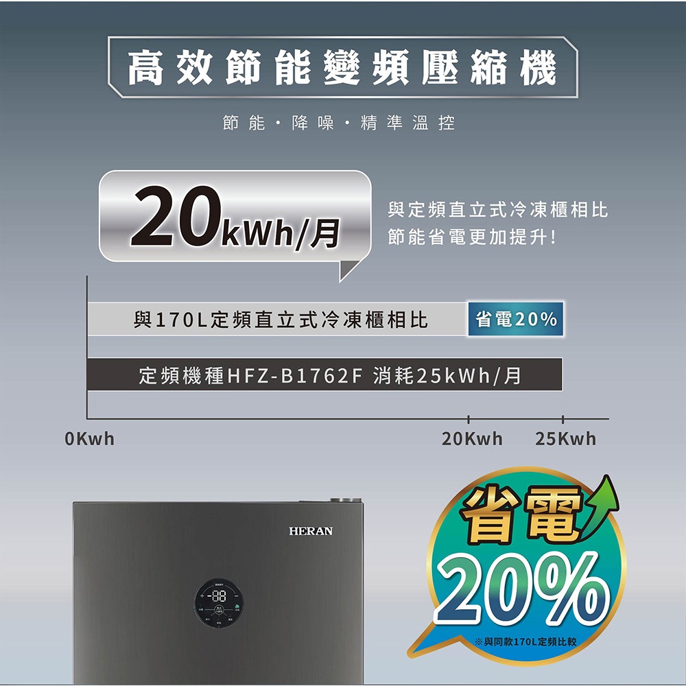 HERAN禾聯 170L 變頻直立式冷凍櫃 HFZ-B1763FVHERAN禾聯 170L 變頻直立式冷凍櫃 HFZ-B1763FVFreezersHERAN禾聯 熊好的店