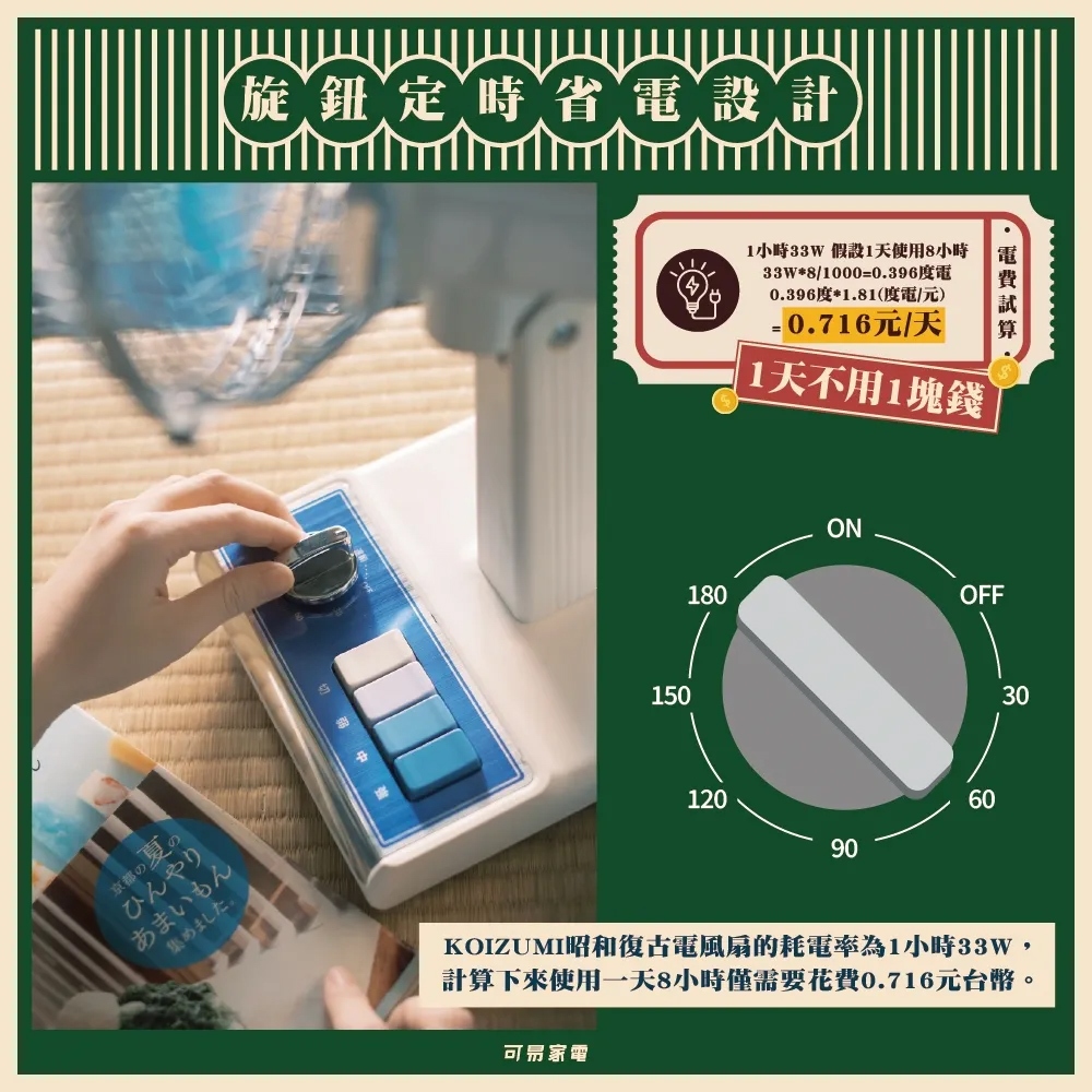 【日本KOIZUMI】10吋復古電風扇 (綠白款/藍白款)|台隆手創館藍白款|綠白款CoolingHANDS台隆手創館|官方旗艦店