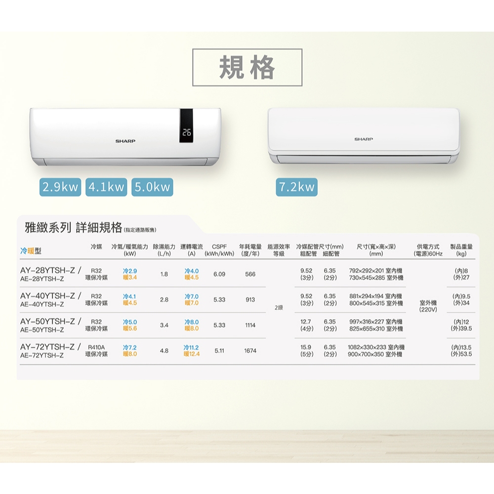 SHARP夏普 AY/AE-72YTSH-Z 雅緻系列 10-12坪 變頻冷暖空調 (箱損優質品)SHARP夏普 AY/AE-72YTSH-Z 雅緻系列 10-12坪 變頻冷暖空調 (箱損優質品)CoolingHERAN禾聯 熊好的店