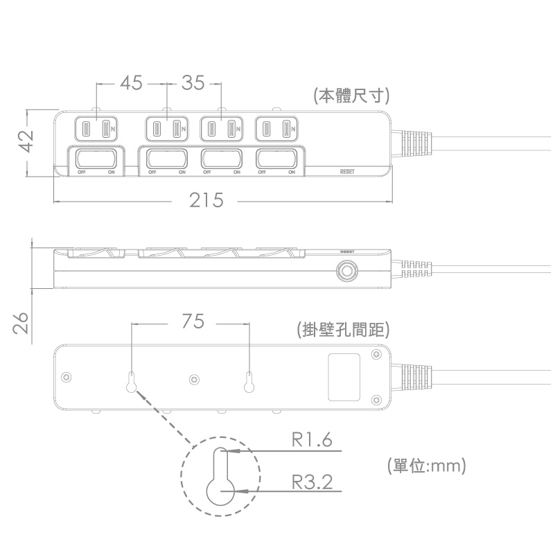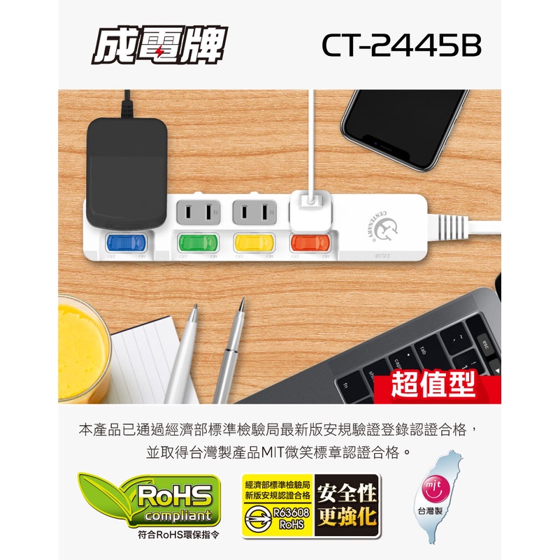 成電牌 超值型 2P延長線4切4座(CT-2445B)2.7M (270公分)|4.5M (450公分)|6.3M (630公分)|1.8M (180公分)Electric Sockets & Extension CordsiPlus+保護傘延長線品牌館