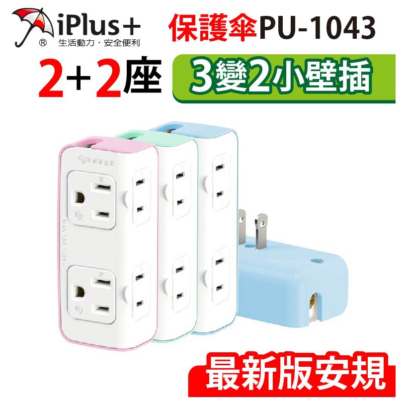 【保護傘】3變2便利小壁插 2+2座(PU-1043)玫瑰粉|薄荷綠|嬰兒藍Electric Sockets & Extension CordsiPlus+保護傘延長線品牌館