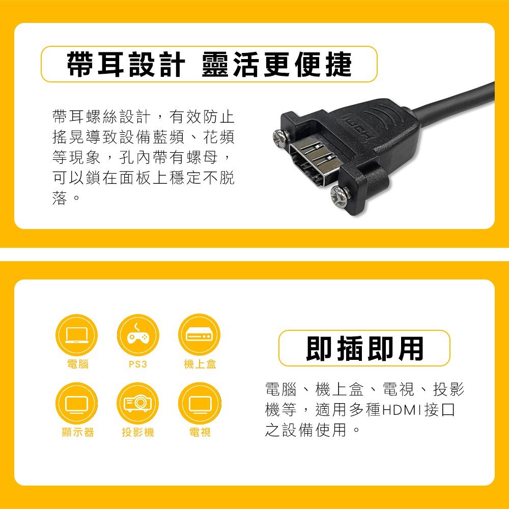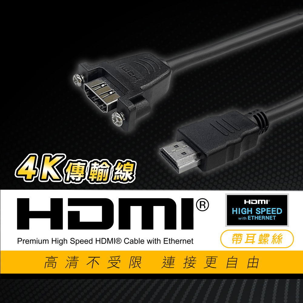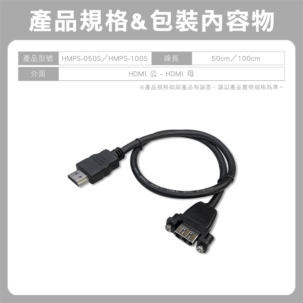 HDMI 4K 60Hz 帶鎖孔 HDMI 公母 延長線 面板帶耳 螺絲 鏍母 裝潢固定面板 HDMI 線 頭50cm(HMPS-050S)|100cm(HMPS-100S)Othersi-gota官方旗艦館|昶興電子