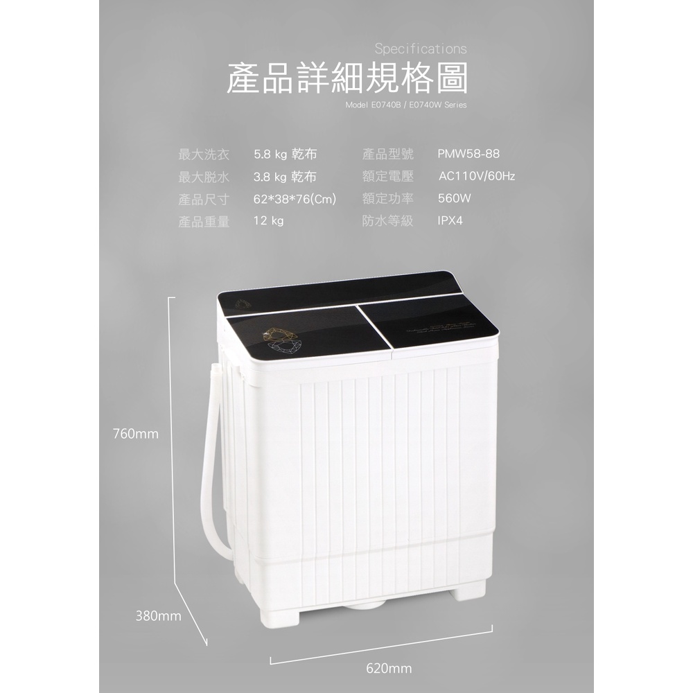 【IDEAL 愛迪爾】鋼化玻璃 洗脫兩用 迷你雙槽洗衣機 (E0740B Plus- 5.8kg )-迷你洗衣機【IDEAL 愛迪爾】鋼化玻璃 洗脫兩用 迷你雙槽洗衣機 (E0740B Plus- 5.8kg )-迷你洗衣機Washing Machines & Dryersideal愛迪爾