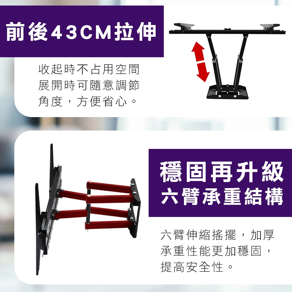 【台灣出貨】10~75吋 雙臂可調LED螢幕壁掛架 電視架 顯示器 壁掛架 適合 SONY 禾聯 國際牌 LG 三星32~75吋_【不能店到店與標準包裹】|10~26吋_【店到店限6台】|32~55吋_【不能店到店與標準包裹】|13~32英吋1出1氣壓臂【到店限2台】TV Bracketsi-gota官方旗艦館|昶興電子