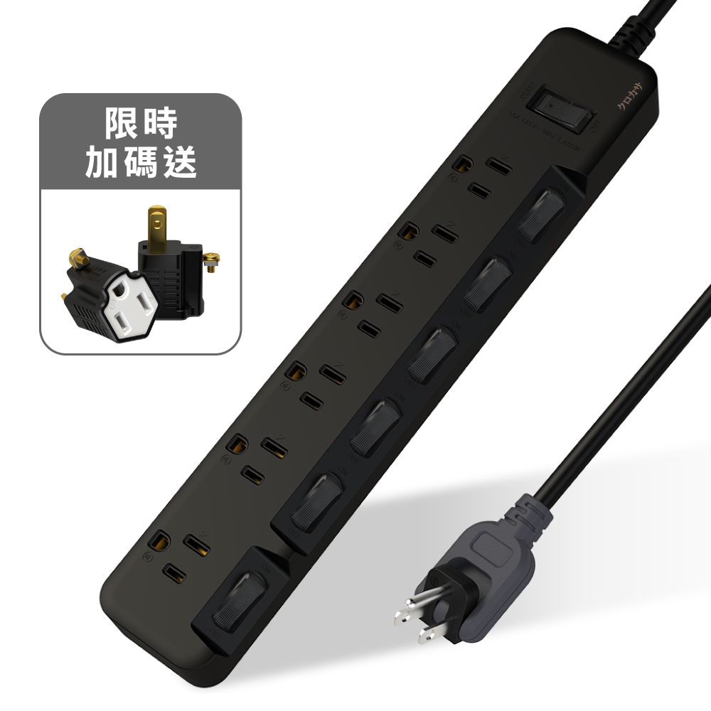 黑傘 3P延長線 7切6座 消光黑 旋轉插頭 斜面式開關 (KU-3766-BK)120公分 (送CT-1011黑色乙顆)|180公分 (送CT-1011黑色乙顆)|270公分 (送CT-1011黑色乙顆)|450公分 (送CT-1011黑色乙顆)|4尺 (120公分)|6尺 (180公分)|9尺 (270公分)|15尺 (450公分)Electric Sockets & Extension CordsiPlus+保護傘延長線品牌館