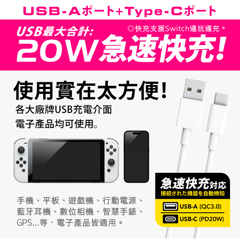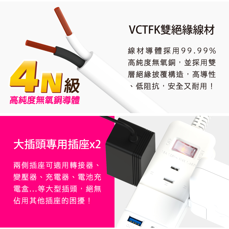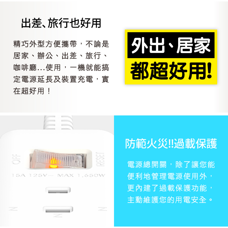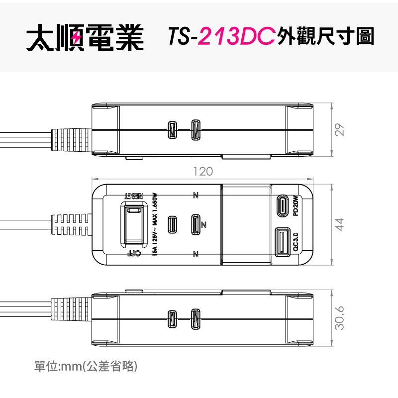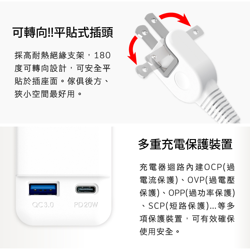 Tyson太順電業 1切3座+20W智慧快充 2P延長線(TS-213DC)0.45M (45公分)|1.8M (180公分)|2.7M (270公分)|0.9M (90公分)|4.5M (450公分)Electric Sockets & Extension CordsiPlus+保護傘延長線品牌館