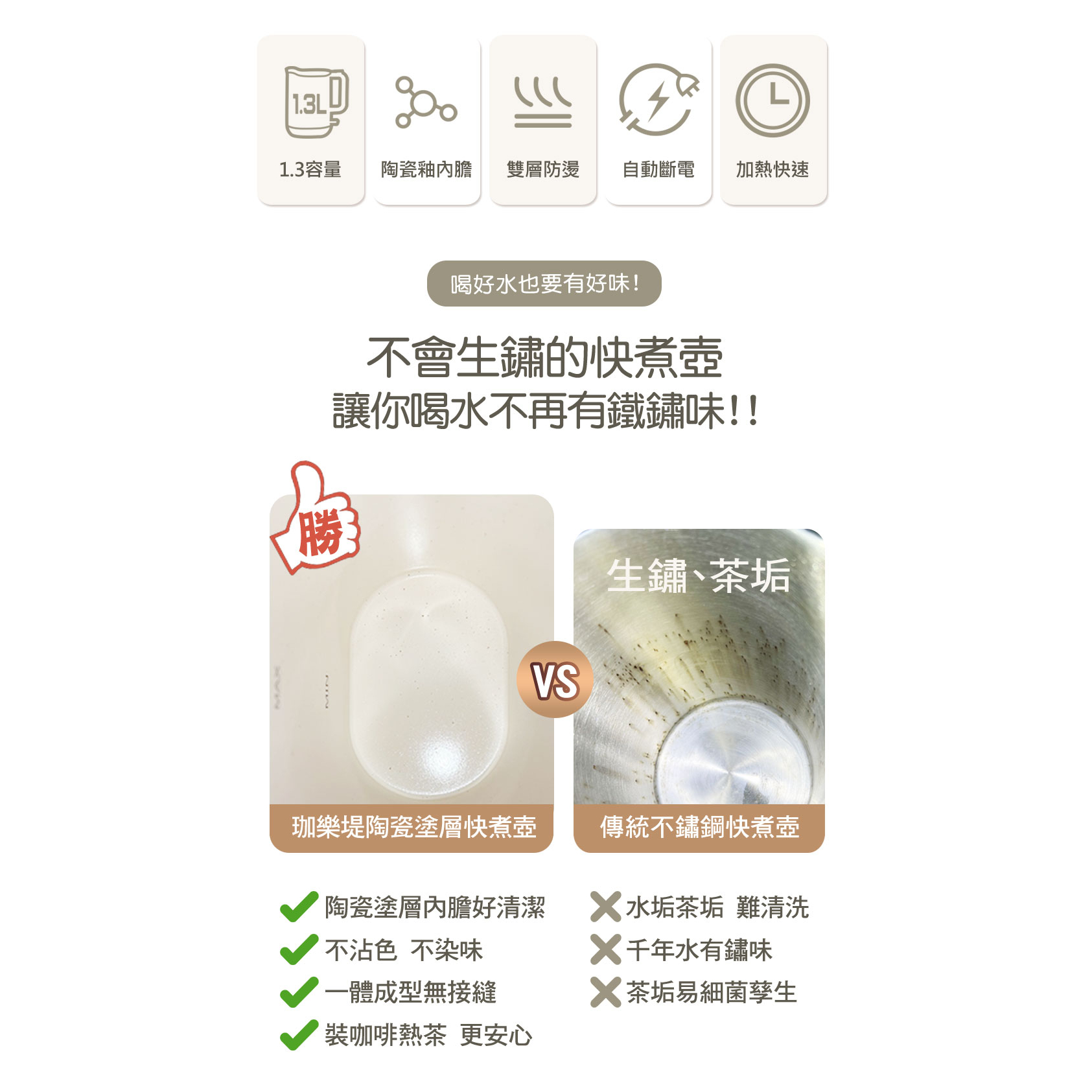 晶工旗艦館【義大利Giaretti】1.3公升陶瓷塗層快煮壺 GT-KTC26晶工旗艦館【義大利Giaretti】1.3公升陶瓷塗層快煮壺 GT-KTC26KettlesJINKON 晶工官方旗艦館
