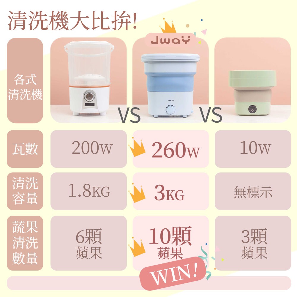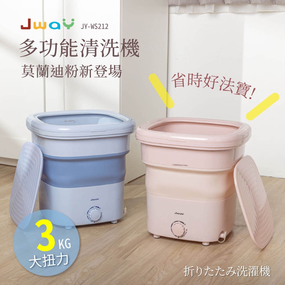 【JWAY】多功能清洗機|可摺疊收納 清洗脫水一機擁有|迷你 小型 內衣褲 宿舍 小清洗機 雅房 租房JY-WS212藍|粉Washing Machines & DryersJway 直覺設計 品味質感生活