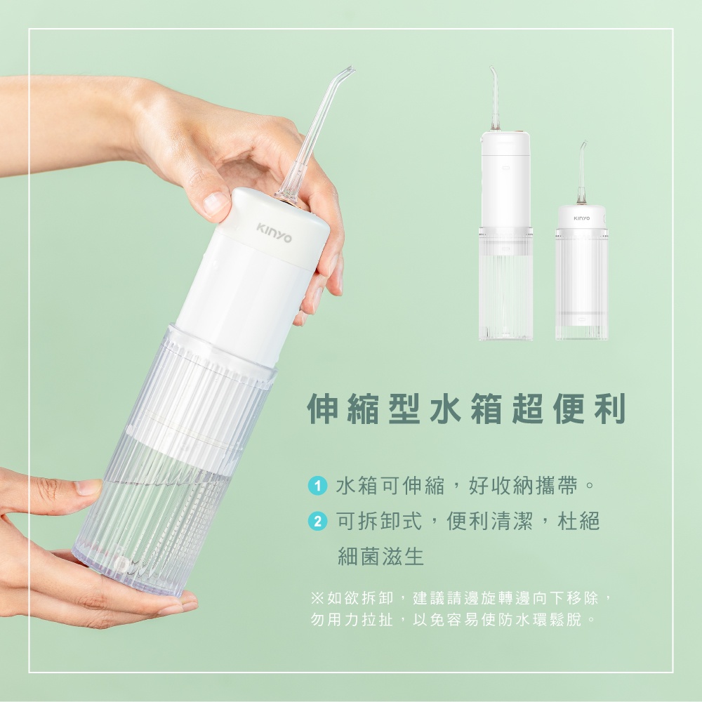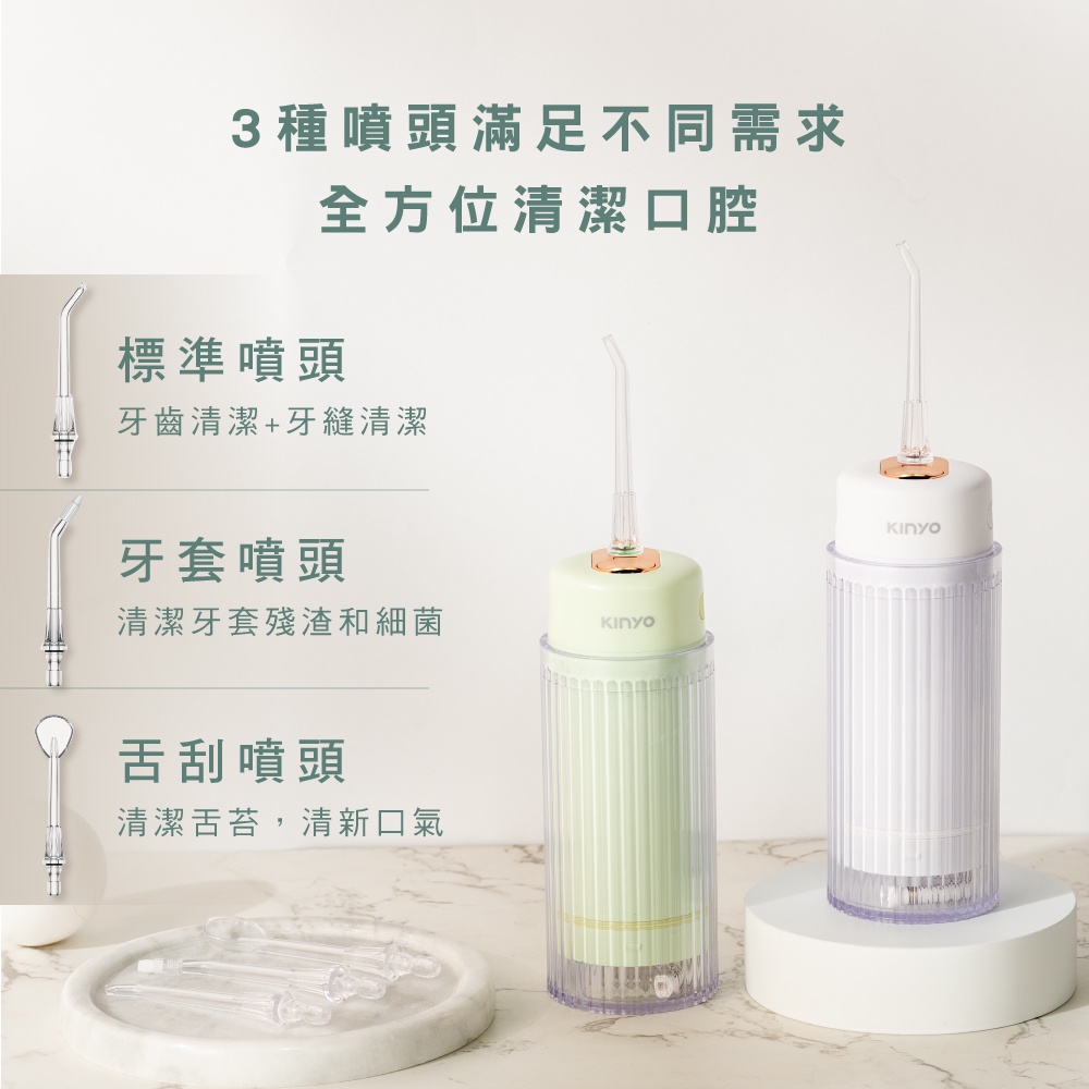 〖KINYO〗 經典美型隨身沖牙機 (IR) USB充電 6段脈衝式水柱 3種噴頭 IPX7級防水 |牙齒 禮物IR1008G 隨身沖牙機 綠色|IR1008W 隨身沖牙機 白色Water FlossersKINYO官方旗艦店_家電館