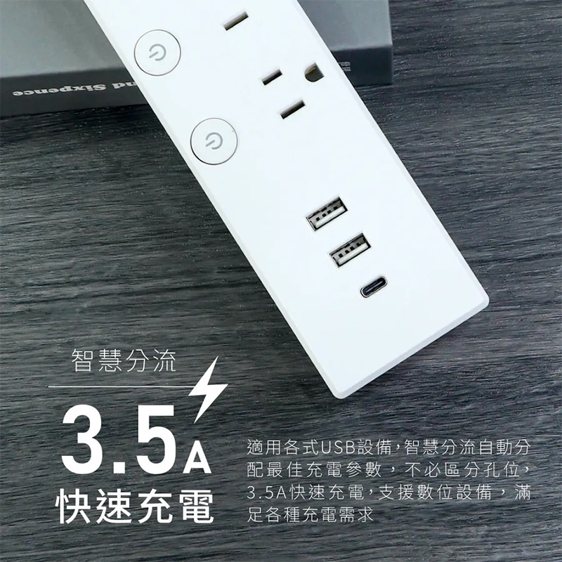 KINYO 五開四插雙USB延長線 6呎 9呎 USB孔 3.5A快速充電 延長線 擴充 獨立開關 安全拉環6呎 (180公分)|9呎 (270公分)Electric Sockets & Extension CordsJV3C商城