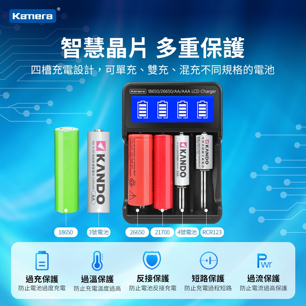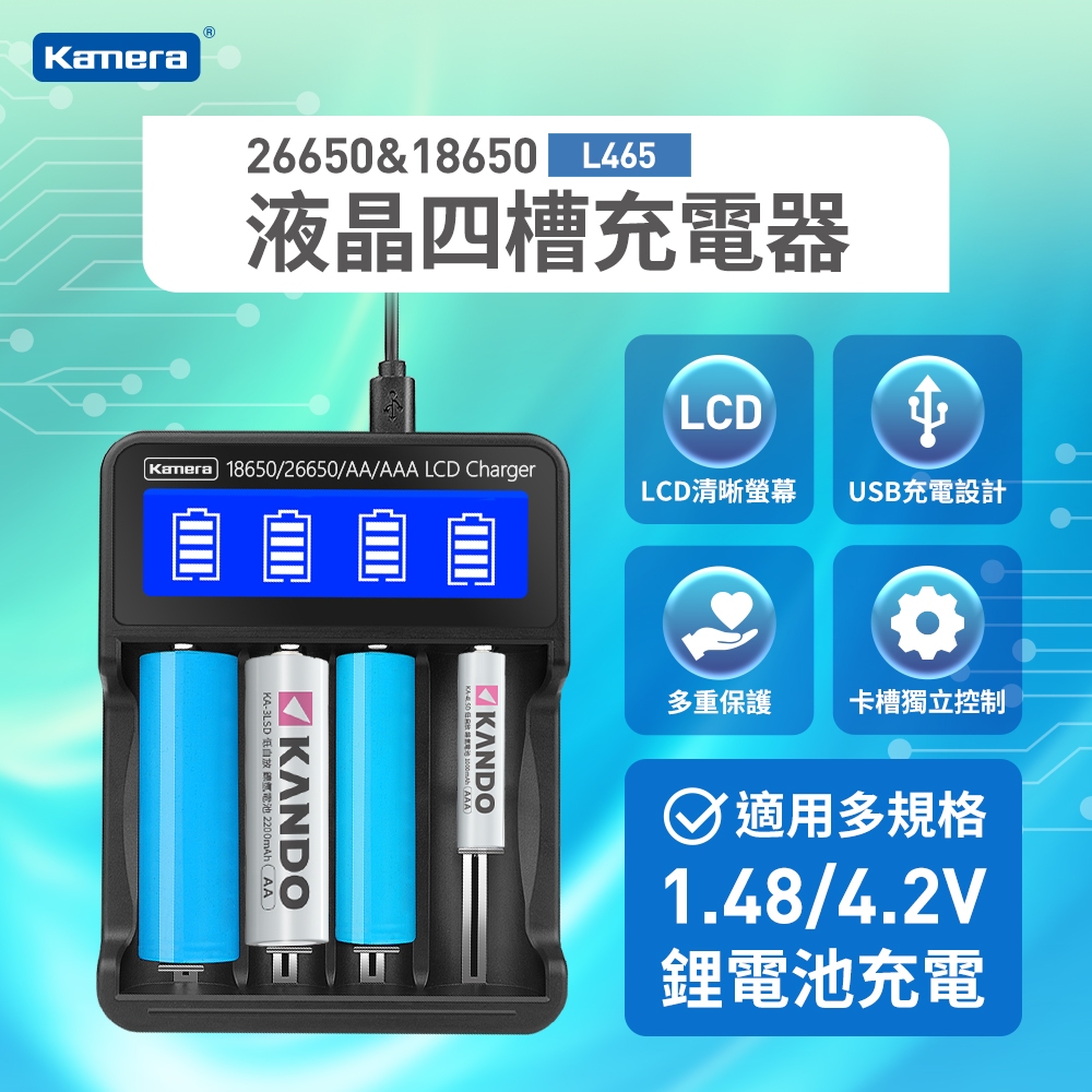 Kamera Kando 18650 26650 3號 4號 充電電池 液晶顯示 四槽充電器 (L465)Kamera Kando 18650 26650 3號 4號 充電電池 液晶顯示 四槽充電器 (L465)Kamera 佳美能旗艦館