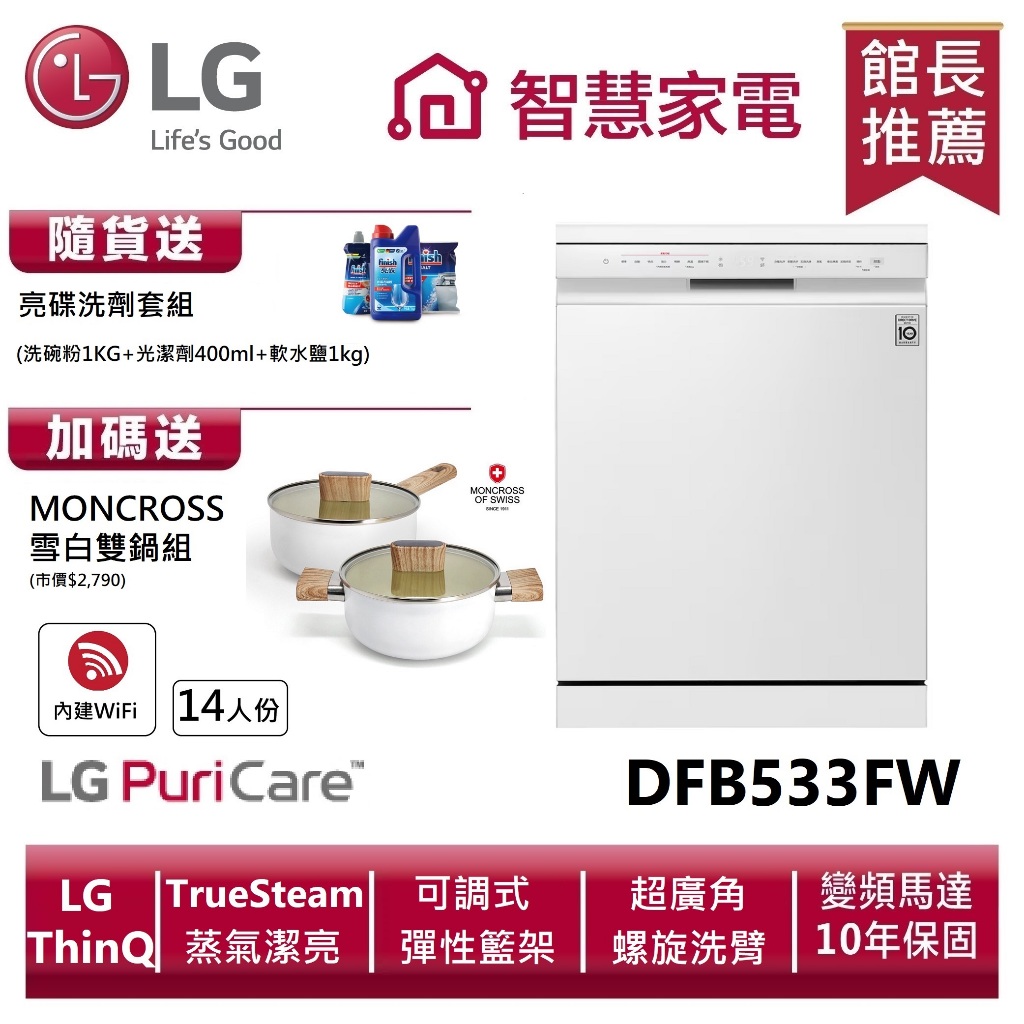 LG樂金DFB533FW QuadWash Steam四方洗蒸氣超潔凈洗碗機(雲朵白) 送湯鍋、洗劑三寶DFB533FW|限時特賣|DFB533FWDishwashersLG旗艦館