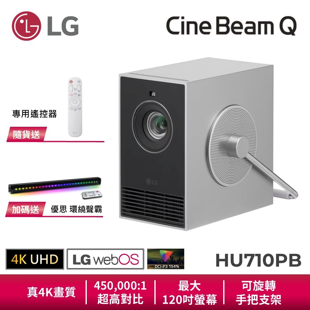 LG HU710PB CineBeam Q 小銀河 4K 微型投影機 webOS 最大120吋螢幕 超高對比小銀河4K微型投影機 (單購)|限時下殺🔥投影機+贈優思環繞聲霸|小銀河4K微型投影機+投影機支架Projectors & Projector ScreensLG 3C品牌旗艦館