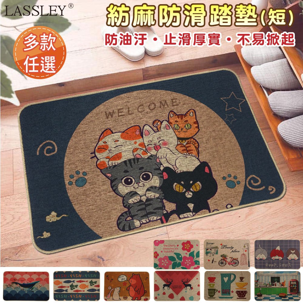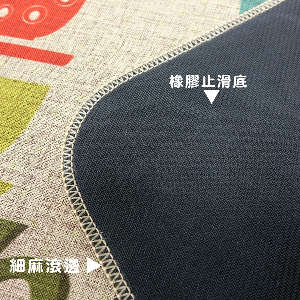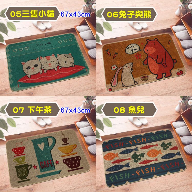 LASSLEY 紡麻防滑踏墊(短)亞麻廚房地墊吸水防滑腳墊免洗防油耐髒進門入戶地毯傢用門墊進門墊踏墊01廚房冰箱|02廚房向日葵|03象與貓頭鷹67x43cm|04兔兔們67x43cm|05三隻小貓67x43cm|06兔子與熊|07下午茶67x43cm|08魚兒|09鯨魚|10貓咪們|11自行車|12麋鹿|13好運屁屁|14櫻桃花Carpets & RugsLASSLEY蕾絲妮居家生活館