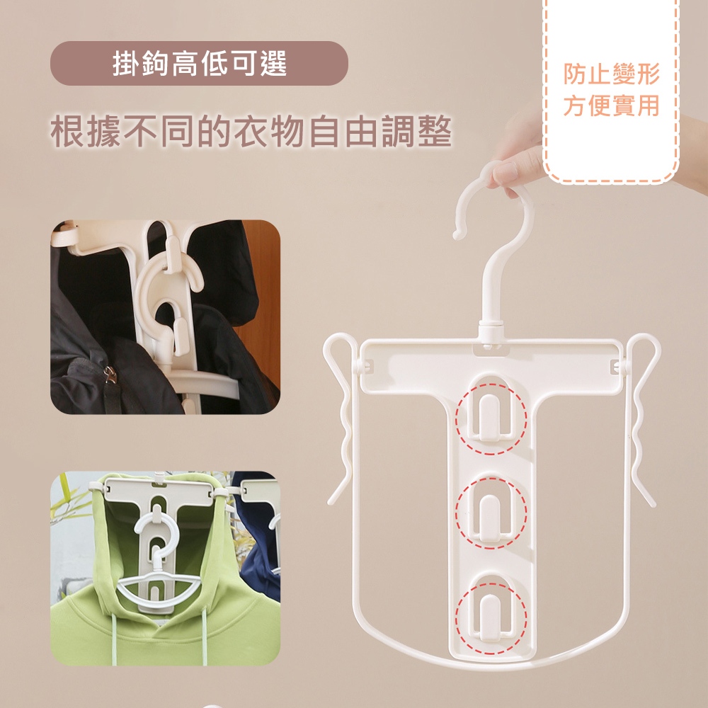 【帽T曬衣架】折疊曬衣架 晒衣架 防風衣架 連帽衣架 掛衣架 高領曬衣架 摺疊衣架 掛衣架 帽T衣架米杏|純白Hangers & PegsH MOD髮摩 品牌旗艦館
