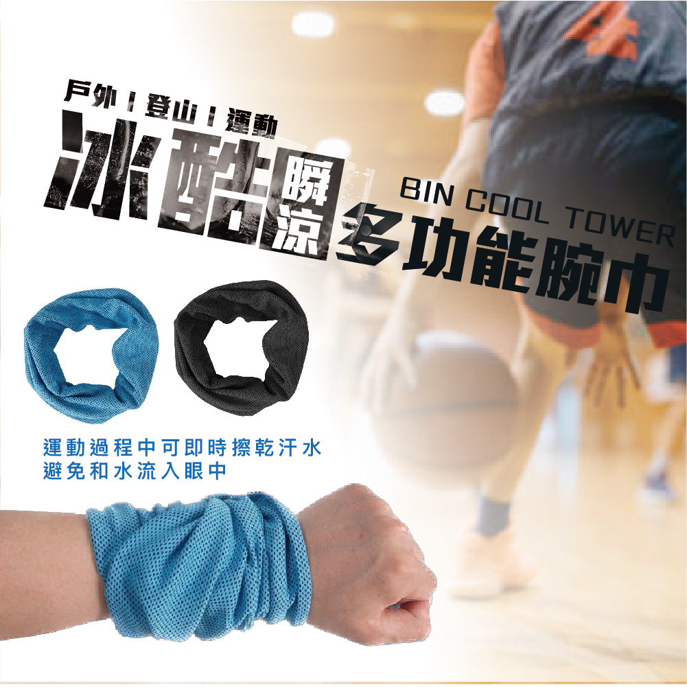 BNN 冰酷多功能手腕瞬涼巾 I 登山x戶外x健身運動巾 運動毛巾黑|淺藍*特別款Towels & Bathrobesimitu 米圖