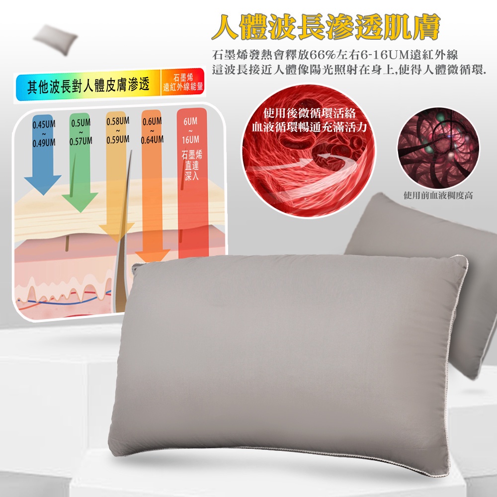 【金大器】石墨烯遠紅外線枕 吸濕排汗 防蹣抗菌 遠紅外線 抗菌抑菌 飯店枕 民宿枕 枕頭 枕芯【快速出貨】