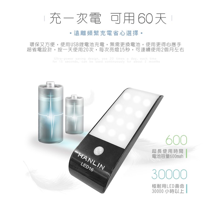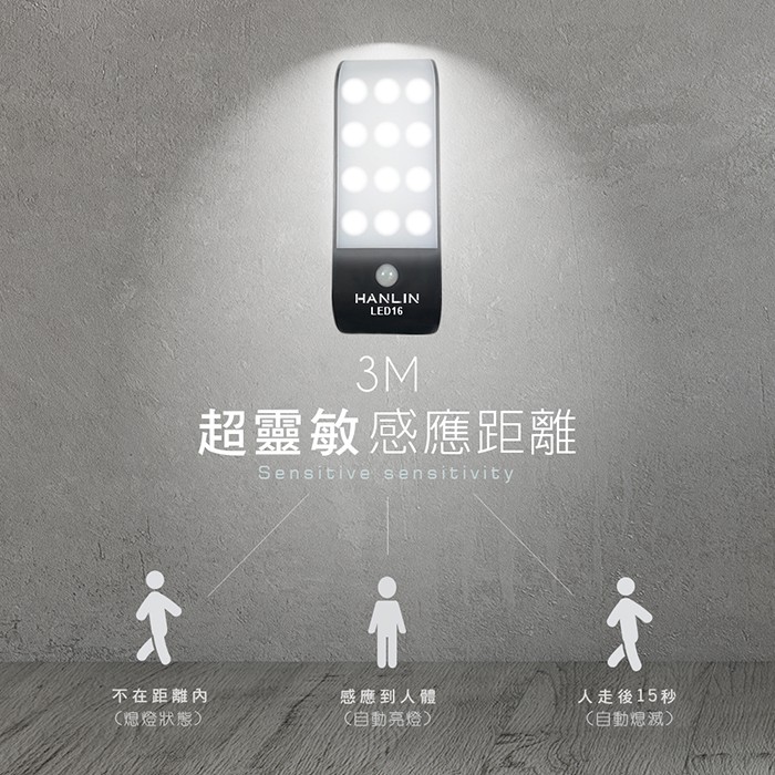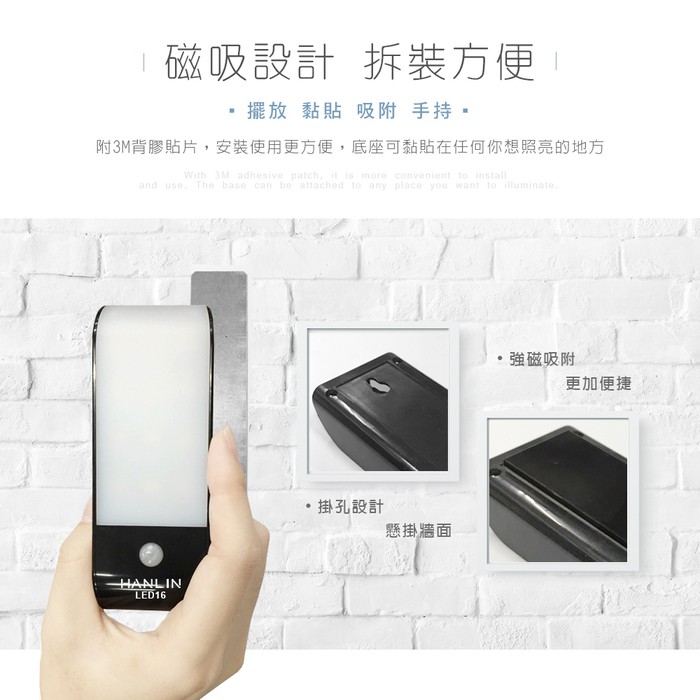 HANLIN-LED16 磁吸USB充電人體感應燈 USB 照明手電筒 壁懸掛 黏貼 小夜燈 夜間照明燈白光|暖光HANLIN官方旗艦店