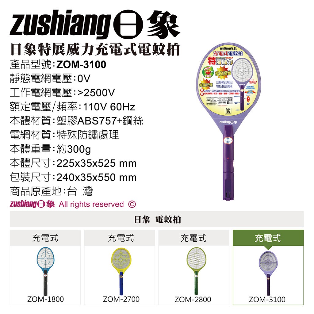 【日象】特展威力電蚊拍(充電式) ZOM-3100 捕蚊拍 超大拍面 捕蚊神器 物理滅蚊1入Pest & Weed Controlhaogeen中華豪井 小家電旗艦店
