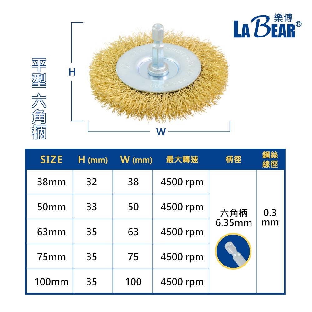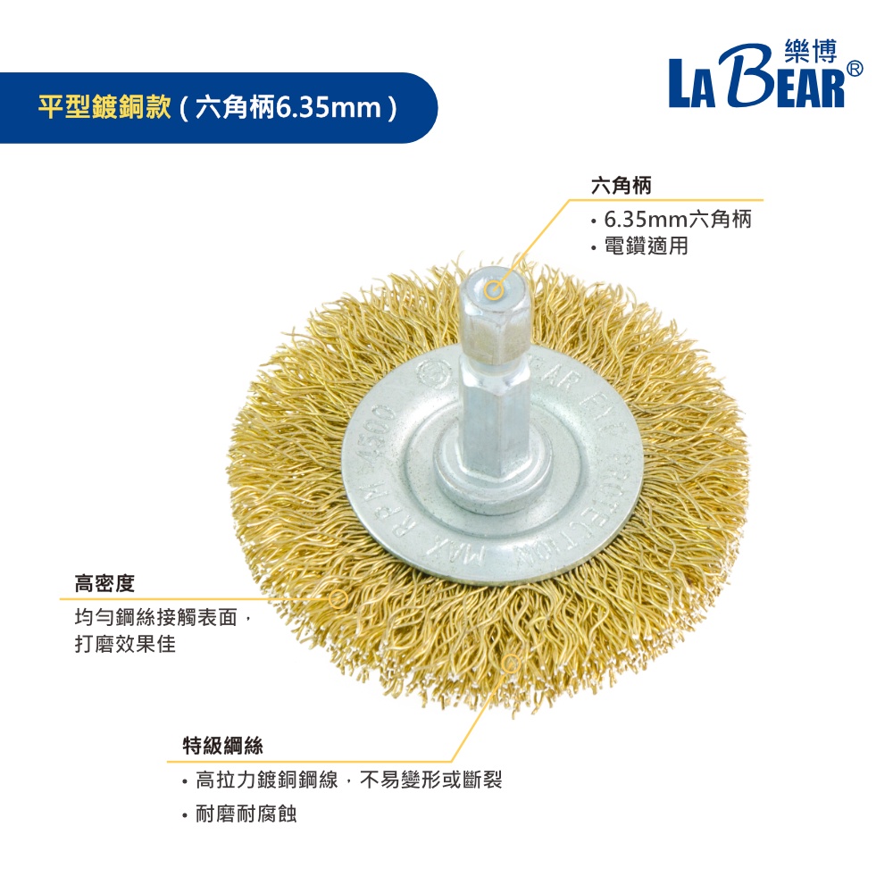 【LaBear】平型鋼絲刷 六角柄/M10鎖牙 38-100mm T型刷 碟型鋼絲輪 鍍銅鋼絲刷 鋼絲輪 電磨刷 除鏽平型 50mm (六角柄)|平型 63mm (六角柄)|平型 75mm (六角柄)|平型 100mm (六角柄)|平型 38mm (六角柄)|碟型曲絲 100mm (M10鎖牙)|碟型扭股 100mm (M10鎖牙)|碟型不銹鋼扭股 100mm (M10鎖牙ToolsLaBear 樂博工具