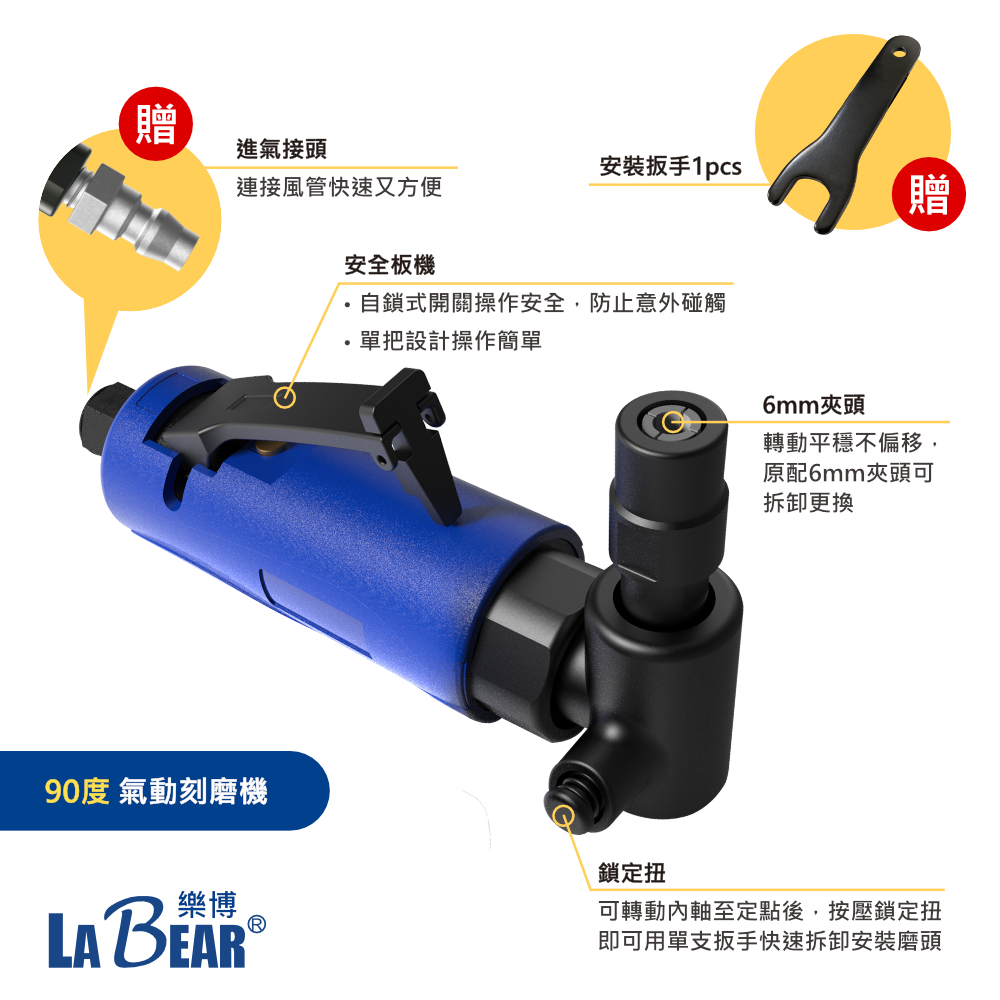 【LaBear】氣動刻磨機 直型/90度 6mm夾頭 氣動迷你打磨機 L型刻磨機 風磨機 輪胎補胎打磨機 拋光機 台灣製直型 氣動刻磨機|90度 氣動刻磨機ToolsLaBear 樂博工具