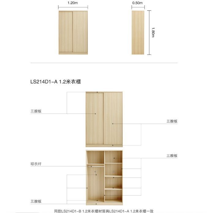 hoi! 林氏木業北歐簡約小戶型1.2M衣櫃 LS214-原木色 (附頂櫃)hoi! 林氏木業北歐簡約小戶型1.2M衣櫃 LS214-原木色 (附頂櫃)Wardrobeshoi! 好好生活|家具館