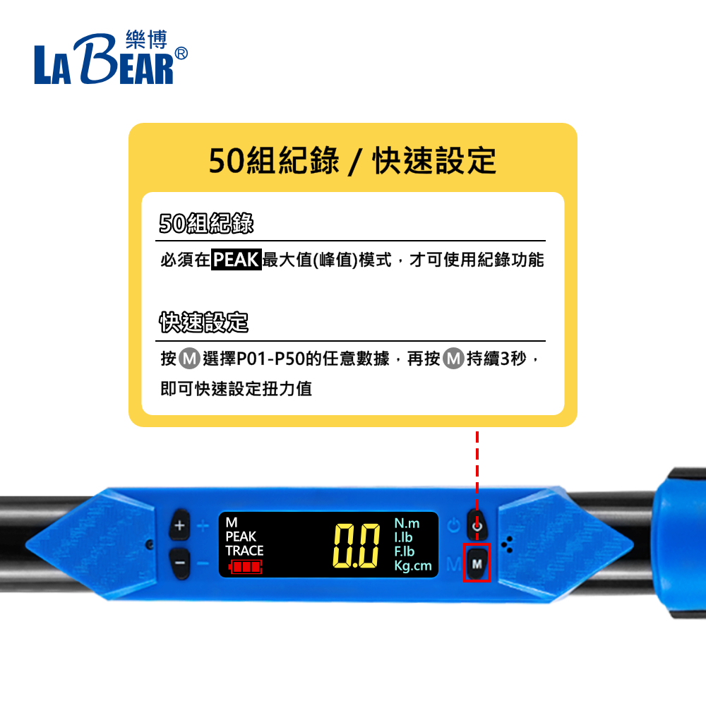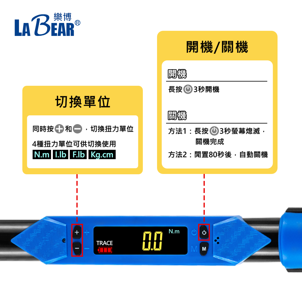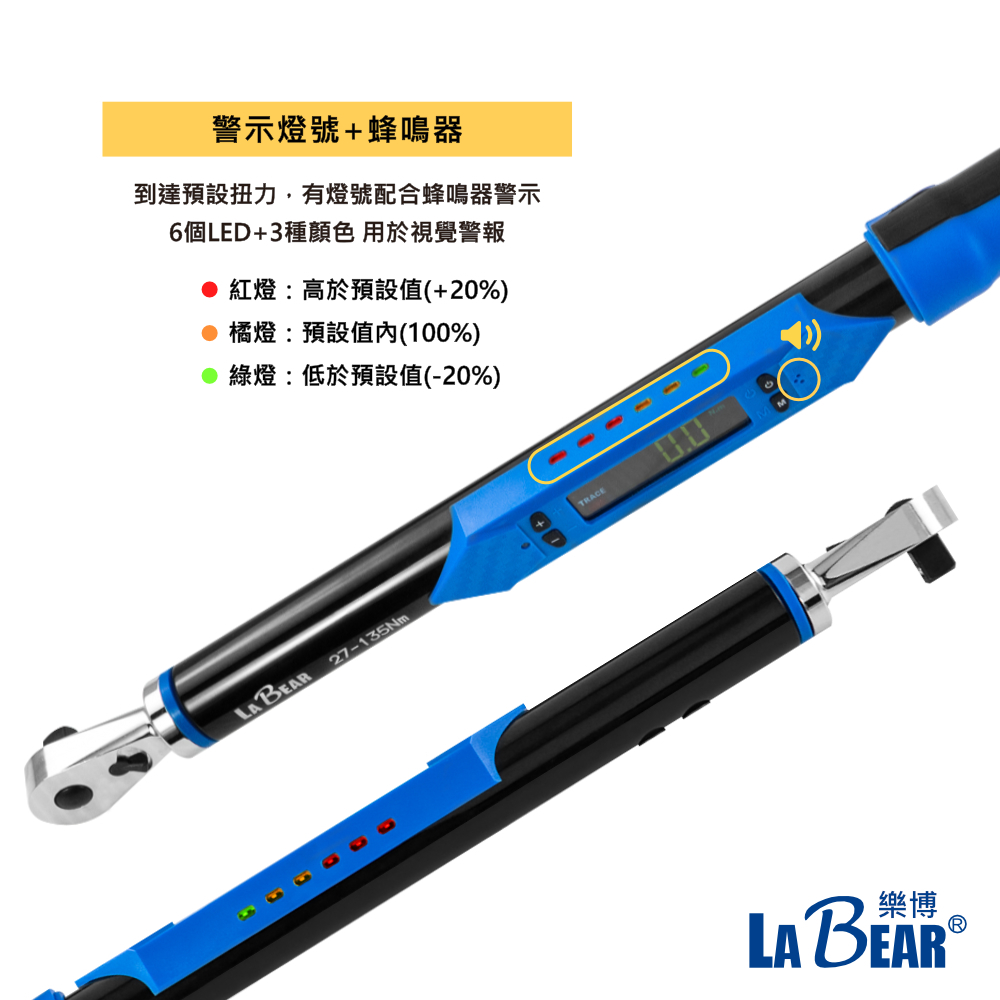 【LaBear】90齒 雙向 電子扭力扳手 3分/4分 數顯示扭力扳手 27-200Nm 數位扭力扳手 電子數顯27~135Nm電子扭力扳手-3分(藍)|40~200Nm電子扭力扳手-4分(藍)ToolsLaBear 樂博工具