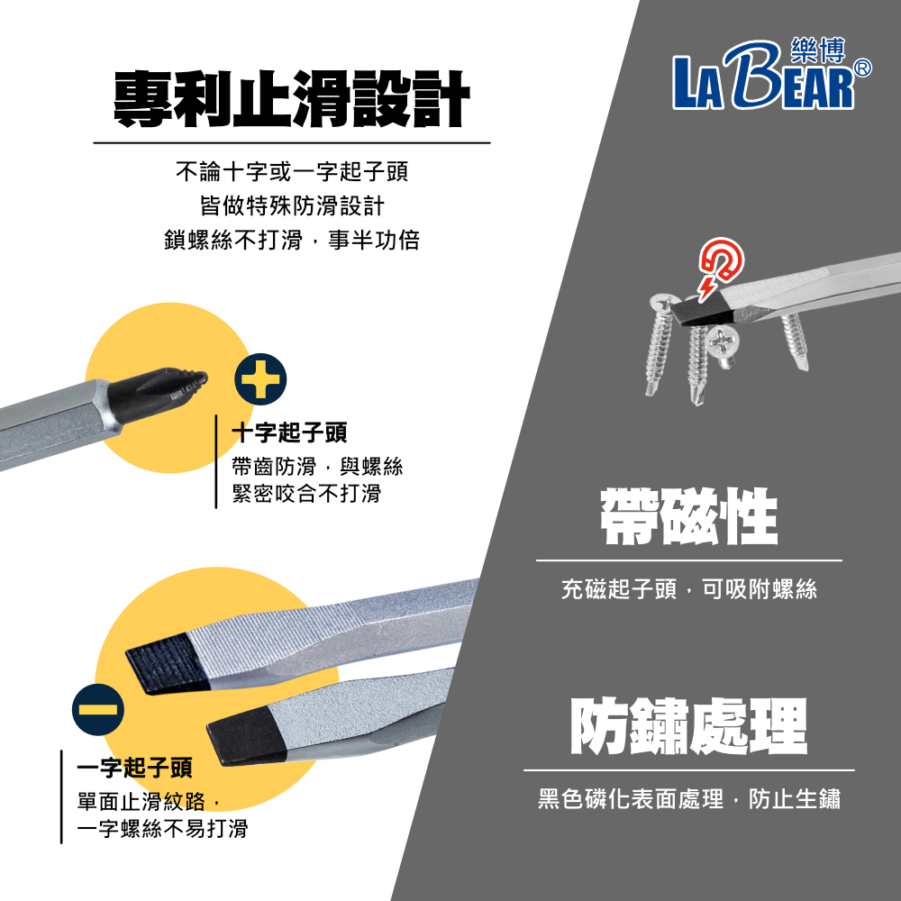 【LaBear】專利止滑 十字/ㄧ字/米字 防滑螺絲起子 龍脊柄 十字起子 一字起子 螺絲起子 台灣製舊款十字PH2x100mm螺絲起子|舊款十字PH2x150mm螺絲起子|舊款米字PZ1x75mm螺絲起子|舊款米字PZ3x150mm螺絲起子|舊款米字PZ2x150mm螺絲起子|十字龍脊柄PH0x75mm螺絲起子|十字龍脊柄PH1x75mm螺絲起子|十字龍脊柄PH1x100mm螺絲起子|十字龍脊柄PH2x100mm螺絲起子|十字龍脊柄PH2x150mm螺絲起子|十字龍脊柄PH3x150mm螺絲起子|一字龍脊柄SL3x75mm螺絲起子|一字龍脊柄SL4x100mm螺絲起子|一字龍脊柄SL5.5x100mm螺絲起子|一字龍脊柄SL6.5x100mm螺絲起子|一字龍脊柄SL6.5x150mm螺絲起子|一字龍脊柄SL8x150mm螺絲起子ToolsLaBear 樂博工具