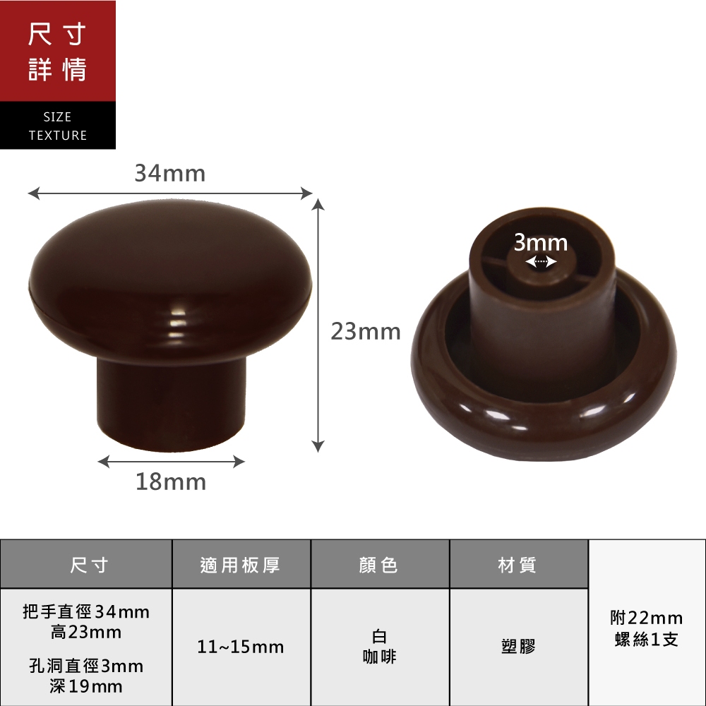 HOPMA【五金配件滿百不含運才出貨】H-70/H-74把手 香菇把手 圓形把手 抽屜把手 塑膠把手 附螺絲 取手 拉手H-74白 Φ38mm(附螺絲),適用板厚11~15mm|H-70咖啡 Φ34mm(附螺絲),適用板厚11~15mm|H-70白 Φ34mm(附螺絲),適用板厚11~15mmOthersHOPMA 合馬家具