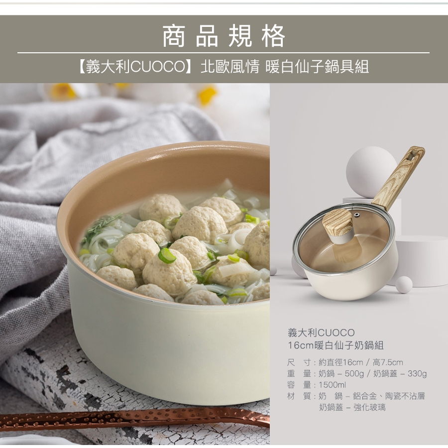 【CUOCO】北歐系列-暖白仙子陶瓷不沾奶鍋16cm/附鍋蓋/IH電磁爐適用【CUOCO】北歐系列-暖白仙子陶瓷不沾奶鍋16cm/附鍋蓋/IH電磁爐適用PansGu.Kang 固鋼官方旗艦店